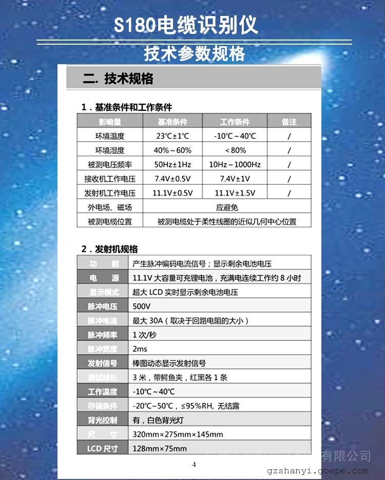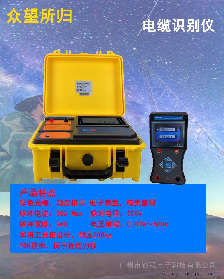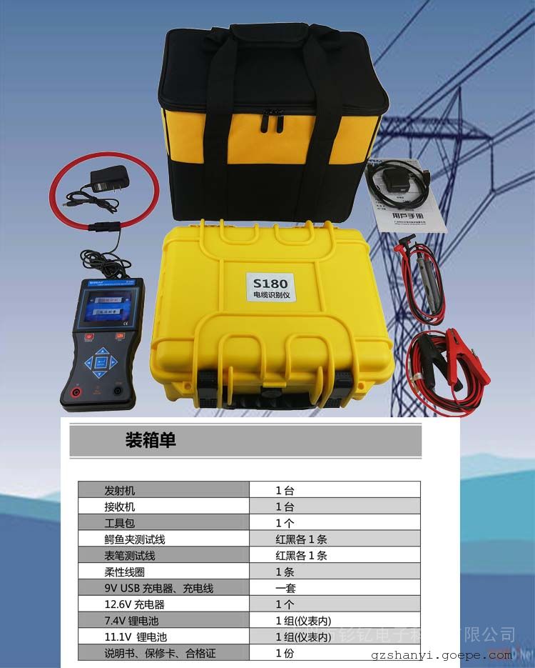 S180电缆识别仪是为电力电缆工程师和电缆工解决电缆识别的技术问题而设计的。用户通过仪器从多根电缆中准确识别出其中某一根目标电缆,避免误锯带电电缆而引发严重事故。电缆识别是从电缆两端的操作开始的,必须保证电缆两端的双重编号准确无误,本仪器设计采用了PSK技术。无论现场工作人员的记忆多么可靠,都不能代替仪器的识别。本产品只适用于已停电的电缆的现场识别,严禁将本电缆识别仪接入正在运行的电力电缆!本仪表由发射机,接收机,柔性电流钳等组成。